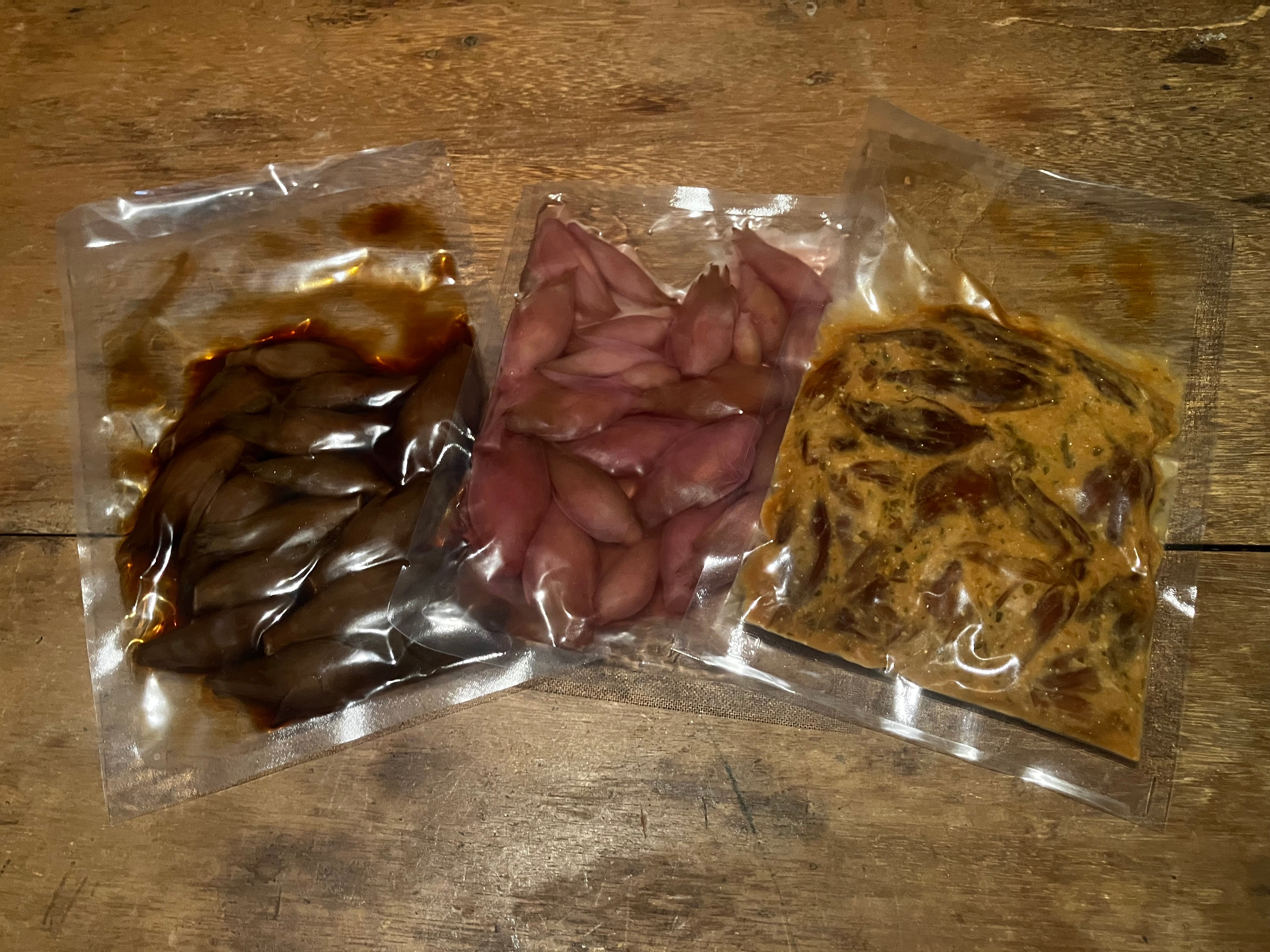 毎年9月限定の出荷となる森田自然農園の自然栽培みょうがを使用し、長野県の食品加工業者さまに委託して製造した甘酢漬け、しょうゆ漬け、味噌漬けをそれぞれ1パックずつ同梱したセットです。クロネコヤマトのクール便で送料0円~発送します。お歳暮などのご贈答にもどうぞ。